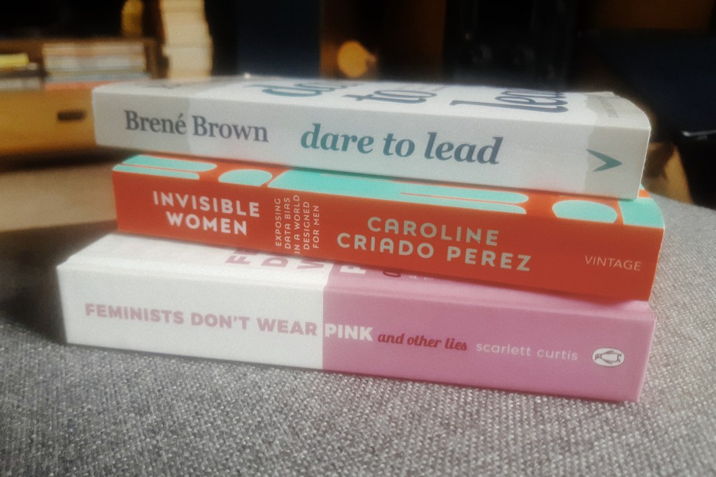 Feminists Don”t Wear Pink by Scarlett Curtis, Invisible Women by Caroline Criado Perez and Dare to Lead by Brene Brown